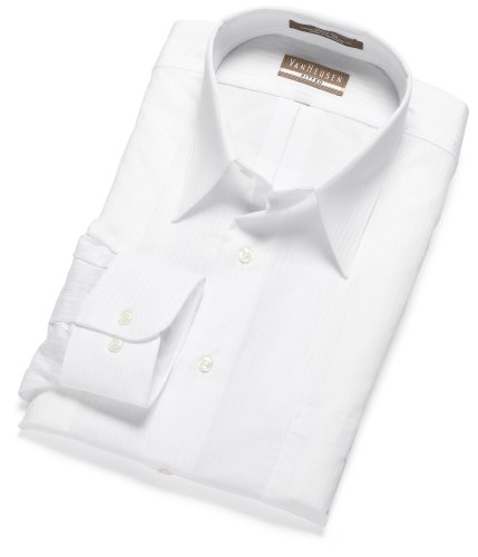 Buy Van Heusen Men's Fitted Long Sleeve Wrinkle Free Satin Stripe Shirt, White, 18 34/35 Now